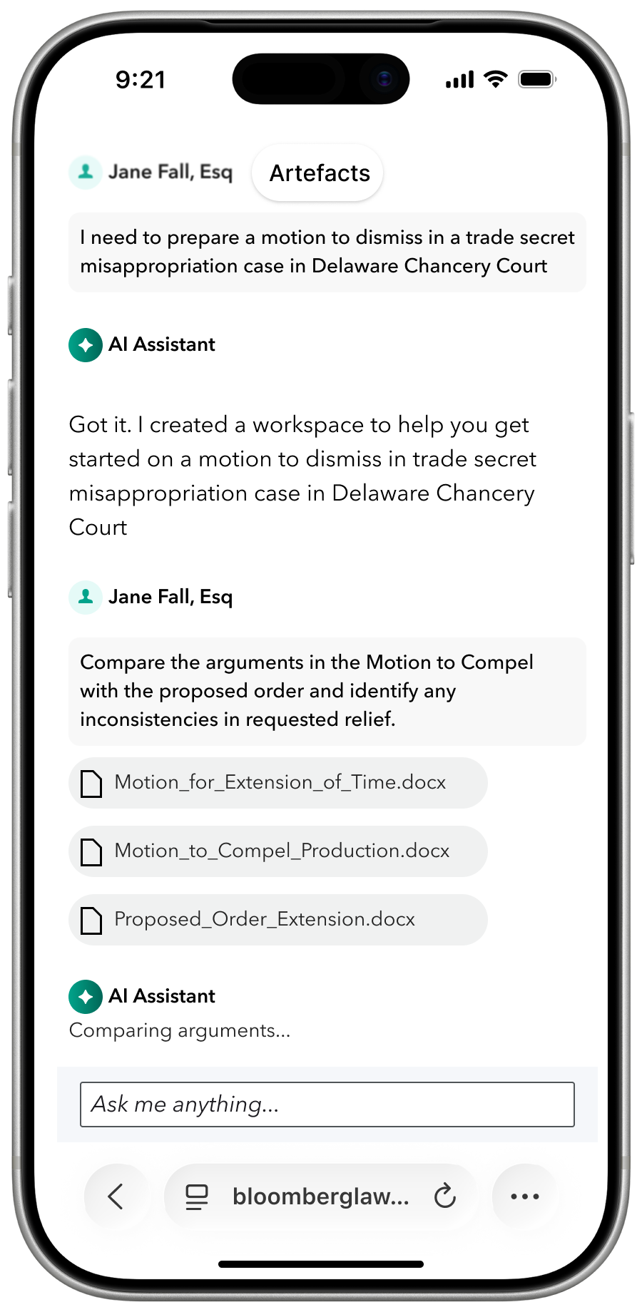 My Role: In 2024, Bloomberg invested heavily in conversational AI experiences, with plans to further leverage that technology to support additional use cases such as litigation drafting. However, a question-and-answer format does not reflect how lawyers actually think. Legal work is not linear; it is iterative.
